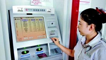 8月13日,中行的工作人员在自助设备上查询当天的汇率变动。