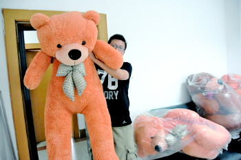 相亲大会为配对成功的男女准备的大毛绒玩具。 本报记者 段学虎 摄