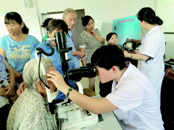“有没有高血压,平时眼睛有什么不舒服……”赵主任为大家讲述白内障的预防治疗方案后,其他专家开始为居民做眼底检查。