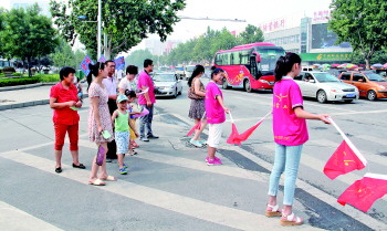 8月14日上午,骄阳似火的天气不减东营义工饱满的热情。东营义工组织,是长期致力于社会公益事业的志愿者组织。此次参加广饶县“文明交通建设”活动,东营义工组织共出动成员十余人,自行携带相关装备,主动走上街头,维护交通秩序,帮助民警发放宣传资料。东营义工促进交通文明建设,有利于进一步增进警民关系,加快交通秩序的进一步好转,对我县文明交通建设活动起到重要作用。