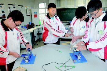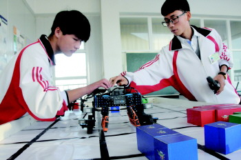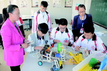 学生对机器人等“动手比赛”兴致高 每个班都会上演“全班总动员”