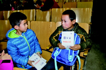 8日,天空飘着蒙蒙细雨,本报联合东营千善助学中心组织的“寒秋暖心”捐赠活动却没有因此停下脚步。当天,本报小记者团及爱心人士组成的40多个家庭代表,乘车赶往临朐五井镇,为那里的43名贫困儿童每人送去了600元善款及书包等。东营四所爱心学校还为那里的三所学校捐赠5500多册图书,建立爱心图书室。