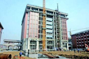 而目前教学楼、实验楼、图书综合楼及公寓等的外装已经基本完成,铝合金窗户也都已经安装完毕,水电暖的施工也基本完成,餐厅、宿舍区已经进行最后的外装及内装,春节前或将施工完毕。
