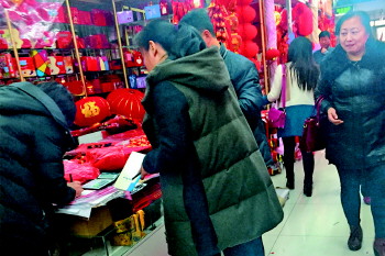 记者了解到,为了应对线上销售的冲击,摆脱电商压境的困境,很多实体店也在网上开了网店,“网店才起步,订单量还不多。”好宜家小商品城店主张女士说,原先实体店只能单纯地依靠节庆来提升销量,现在她也可以从网上销售,实体店用来让顾客体验。目前,张女士已经提前准备了春联、剪纸等一万余件商品,应对春节销售高峰的到来。