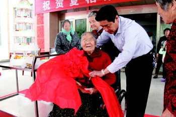 5月14日(农历四月初八),沙营社区老年公寓内百岁老人夏相荣过了一个特别的生日。据了解,为庆祝夏相荣老人百岁寿诞,沙营社区的工作人员为老人准备了生日蛋糕以及慰问金,还在老年公寓内准备了一场好看的演出,让整个老年公寓内的老人一起与夏相荣老人过生日。面对来祝寿的社区工作人员及亲朋好友,夏相荣老人笑得合不拢嘴。