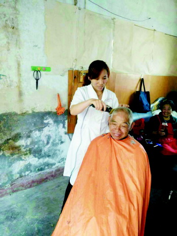 在得知张奎的情况后,美滨花园小区的网格长王莉莉,上门为张奎理发。王莉莉之前学过理发,自从做了网格长后,她经常给辖区内的居民提供服务,上门为居民理发。 (本报记者 孙娜娜)