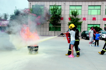 孩子们学习灭火。 本报记者 任小杰 通讯员 李士琦 摄