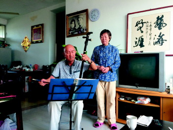 周俊国年轻时是一名“文艺青年”,自学二胡和坠琴,如今是社区里的文艺骨干。老伴儿闫常娥则爱好演唱京剧、吕剧等戏剧。两个人真正是夫唱妇随。凭借着相当契合的业余爱好,老两口不仅把自己的生活安排的精彩有趣,也成了社区里的一段佳话。