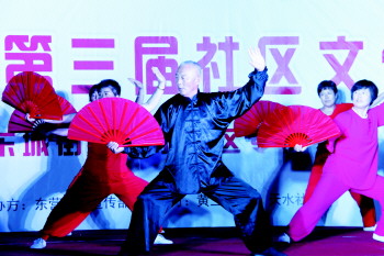 伴着欢快的舞曲,开场舞《泉水叮咚》拉开了本场文化汇的序幕。早在演出开始前一个小时,很多大爷大妈们就早早地占位等候演出的开始。鉴于本次观众主要是老年人,整场演出的曲目以京剧和吕剧等传统曲艺为主,而且都不需要音乐伴奏带,老人们自己吹拉弹唱,很多老人说,这种感觉太好了,“仿佛回到了年轻的时候”。