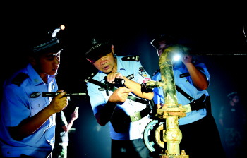夜色中,车辆在坑洼不平的道路上颠簸着,扬起阵阵尘土。“我们管辖区域内有510口油井,162口水井及众多输油管线,点多线长面广……”张堂河告诉记者,大王北油区位于渤海滩涂,距离河口城区50多公里,辖区横跨河口、沾化、无棣三个县区,涵盖大王北、富台、英雄滩、大王庄4个油田,面积大约1500多平方公里。派出所现有民警4人,平均年龄55岁,人均管辖范围近400平方公里。由于地处滩海,盗油分子的盗油手段层出不穷,除了开车、骑摩托车盗油外,更有的驾着渔船盗油,给日常监护和治理带来不小难度。