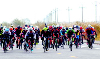本次公路自行车赛,东营市专门把赛道设在了连接黄河入海口生态旅游区与城区之间的道路上,赛道路况好,环境优美。可以说,一路激情无限,一路湿地风光。选手们奋力拼搏、风驰电掣,展现了自行车比赛的独特魅力。十月中旬,正值黄河入海口生态旅游区内芦花飞荡、碱蓬赤红,独具东营地域特色的自然景观,让选手们恍如行驶在画中。选手们飞驰驶出城区,直奔入海口而去。芦花飞雪、百鸟翔集,还有一望无际浪漫、奇幻的“红地毯”……这些东营市的景色当中,车手们穿行而过。赛道途经的优美城市风光和自然风貌成为赛事的一大特点,让选手和观众大呼过瘾。