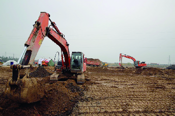 施工现场,大型机械进场。 通讯员提供