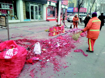 零售商迎来节后销售高峰 环卫部门提倡文明燃放