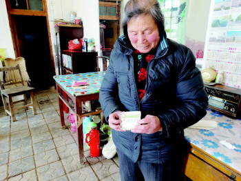 “以前他都是把记有红十字会电话的纸条放在这里面,天天带着。”崔风花拿出一个用牛奶袋做的小袋子,王文安生前就一直带着这个袋子,尤其是住院的时候。