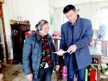 ▲利津县红十字会党组副书记、主任科员李茂友将反馈书的内容告诉崔风花老人,