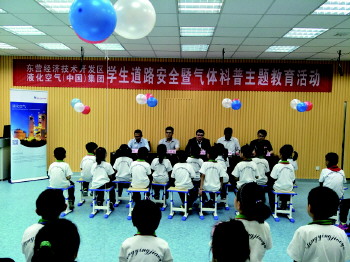 液化空气中国志愿者们为东营经济技术开发区东凯实验学校的小学生们开展道路安全讲座。 本报记者 孙川 摄