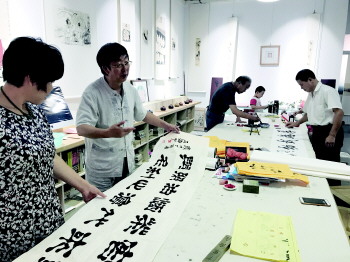 本报7月2日讯(记者 李沙娜) 1日,东营市千善助学中心的爱心人士齐聚黄河口古玩城,来自东营、淄博等地的爱心画家现场泼墨,通过字画现场认领的方式奉献爱心。