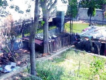 安慧西区81号楼东侧违规搭建的鸡窝鸭棚。