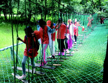 接下来的三天,小记者们将在专业拓展教练的带领下进行一系列的拓展项目训练,并进行新的挑战,高空断桥,挑战自己的极限。