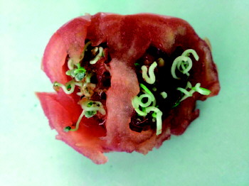 西红柿里长出了“豆芽”?