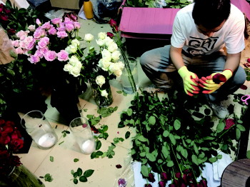 准备第二天出售的鲜花。本报记者 徐文君 摄
