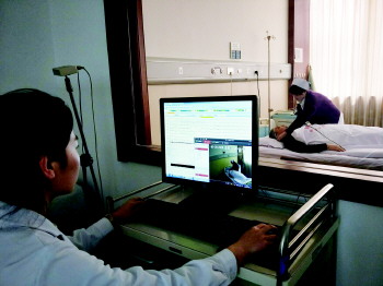 医生正在为患者做睡眠监测。 本报记者 吕增霞 摄
