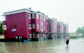 16日下午4点半,倾盆大雨后,天空依旧乌云密布,雷声阵阵。家住胜北社区的王老爷子躲过大雨之后,趟水前行,急着往家赶,准备给快要下班的孩子和老伴做晚饭。