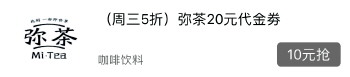每周三,10元购20元代金券。