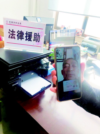 东营市法律援助中心推行4G“上门服务”,帮助张某办理法律援助手续。